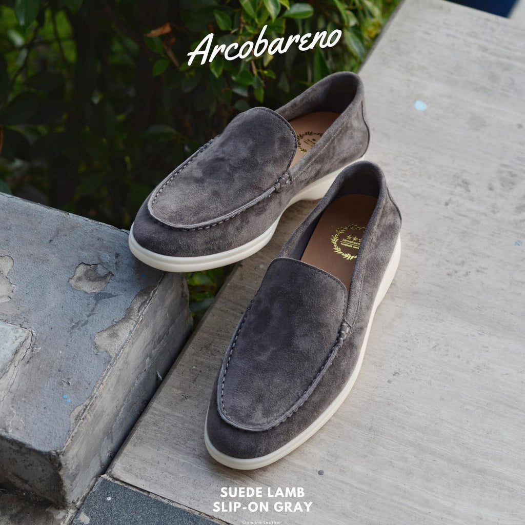 Crafted from genuine suede lamb leather, this slip-on combines minimalist elegance with ultimate comfort.